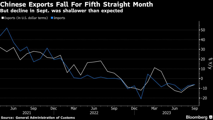 Спадът в износа на Китай се забави допълнително през септември, добавяйки предпазлив оптимизъм, че някои части от втората по големина икономика в света се стабилизират.