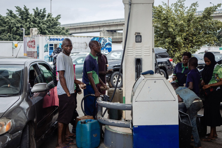 Клиенти чакат да им бъде напълнен резервоарът с гориво на бензиностанция в Лагос, Нигерия