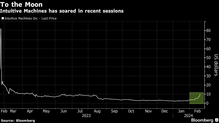 Акциите на Intuitive Machines, бивша космическа компания със специална цел за придобиване, която се търгуваше под цената на първоначалното си публично предлагане през по-голямата част от публичния си живот, се изстреляха към Луната тази сутрин – буквално.