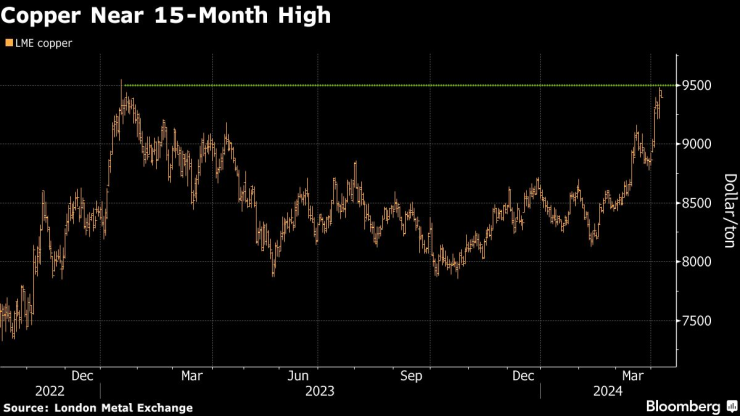 Цените се повишиха с над 10% тази година, тъй като прекъсванията в големите мини заплашват производството на рафинирани медни продукти в китайските заводи, които представляват повече от половината световно предлагане. Очакваното обръщане на Федералния резерв тази година към по-лесна парична политика също подобрява перспективите пред глобалната икономика.