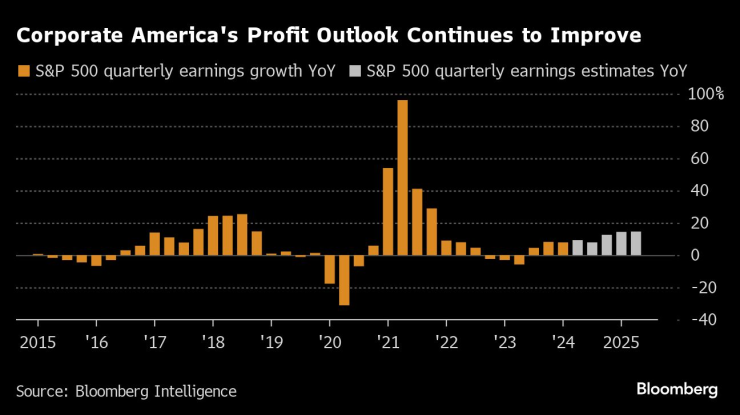 Анализатори изчисляват, че членовете на бенчмарка ще отбележат ръст на печалбите през второто тримесечие с 9,3% спрямо периода от предходната година, което ще бъде най-голямото такова увеличение от последните три месеца на 2021 г., показват данните, събрани от Bloomberg Intelligence.