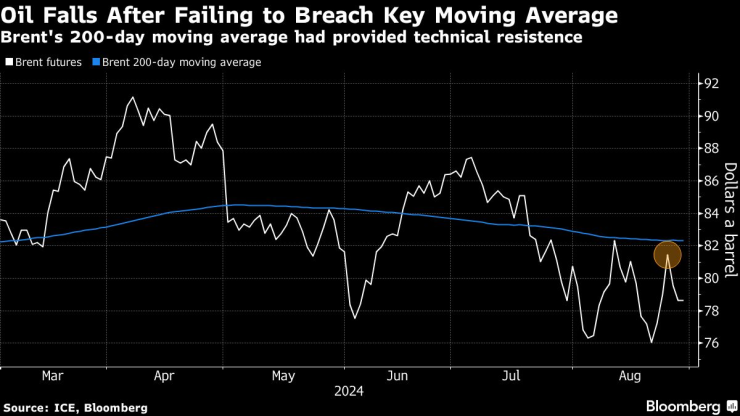 Глобалният бенчмарк Brent е напът за малък спад през август дори след многократните спадове на запасите в САЩ, повишеното напрежение в Близкия изток и спирането на около половината от добива на петрол в Либия. Смята се, че вносител номер 1 Китай не е успял да постигне целта си за растеж от 5% на БВП тази година, според проучване на Bloomberg, което подкопава търсенето в най-голямата икономика в Азия.