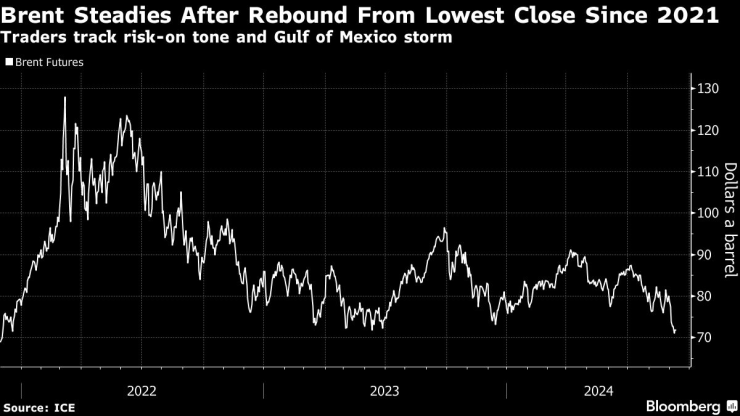Brent беше стабилен под 72 долара за барел, след като се повиши с повече от 1% в понеделник, за да прекъсне шестдневна серия от загуби, като West Texas Intermediate беше близо до 69 долара. Пазарите на акции в САЩ се възстановиха в понеделник от рязък спад, предизвикан от опасенията, че растежът на САЩ се забавя, точно когато икономиката на Китай се препъва.