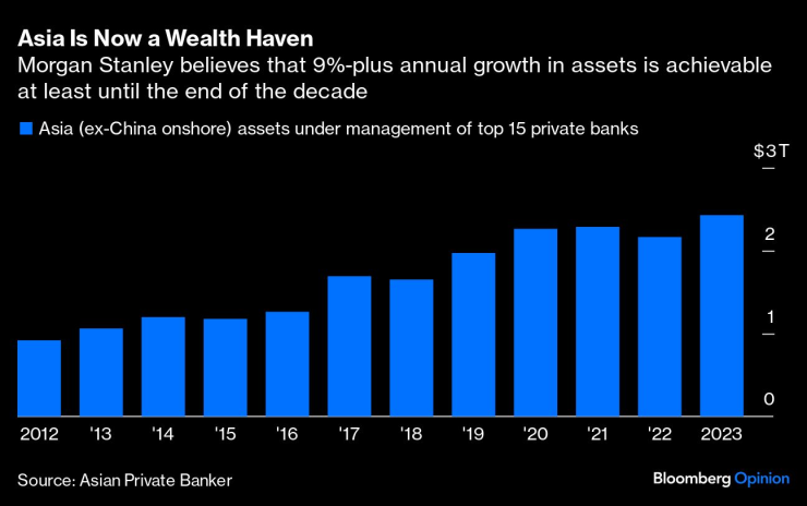 Това ни води до по-важен въпрос: банките може би трябва да погледнат отвъд разширяването на балансите, особено ако китайските стимули не стимулират вътрешноазиатската търговия. Управлението на благосъстоянието и капиталовите пазари може да се превърнат в новото бойно поле. През 2016 г., когато Тръмп беше избран за първи път за президент, активите под управление на 15-те най-големи частни банки в Азия (с изключение на китайското благосъстояние на континента) бяха 1,3 трлн. долара. Сега те са почти двойно повече. Подобен темп на растеж поне до края на десетилетието е постижим, смятат от Morgan Stanley.