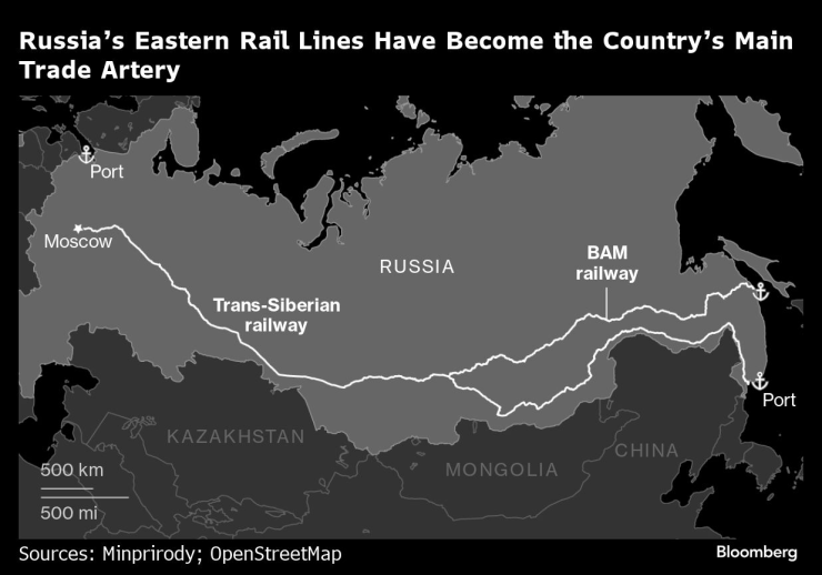 През последните години Русия насочи търговията си към Азия, разчитайки в по-голяма степен на така наречената железопътна мрежа Източен полигон. Нейните 14 000 километра железопътни линии комбинират двете най-дълги железопътни линии в Русия - легендарната Транссибирска линия, свързваща Москва с Тихия океан, и Байкалско-Амурската магистрала, минаваща от Сибир до Далечния изток.