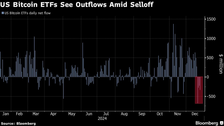 Инвеститорите изтеглиха нетни 1,5 милиарда долара от група от една дузина спот борсово търгувани фондове в САЩ през четирите търговски дни до 24 декември, най-сериозният подобен отлив след победата на Тръмп на изборите в САЩ на 5 ноември.