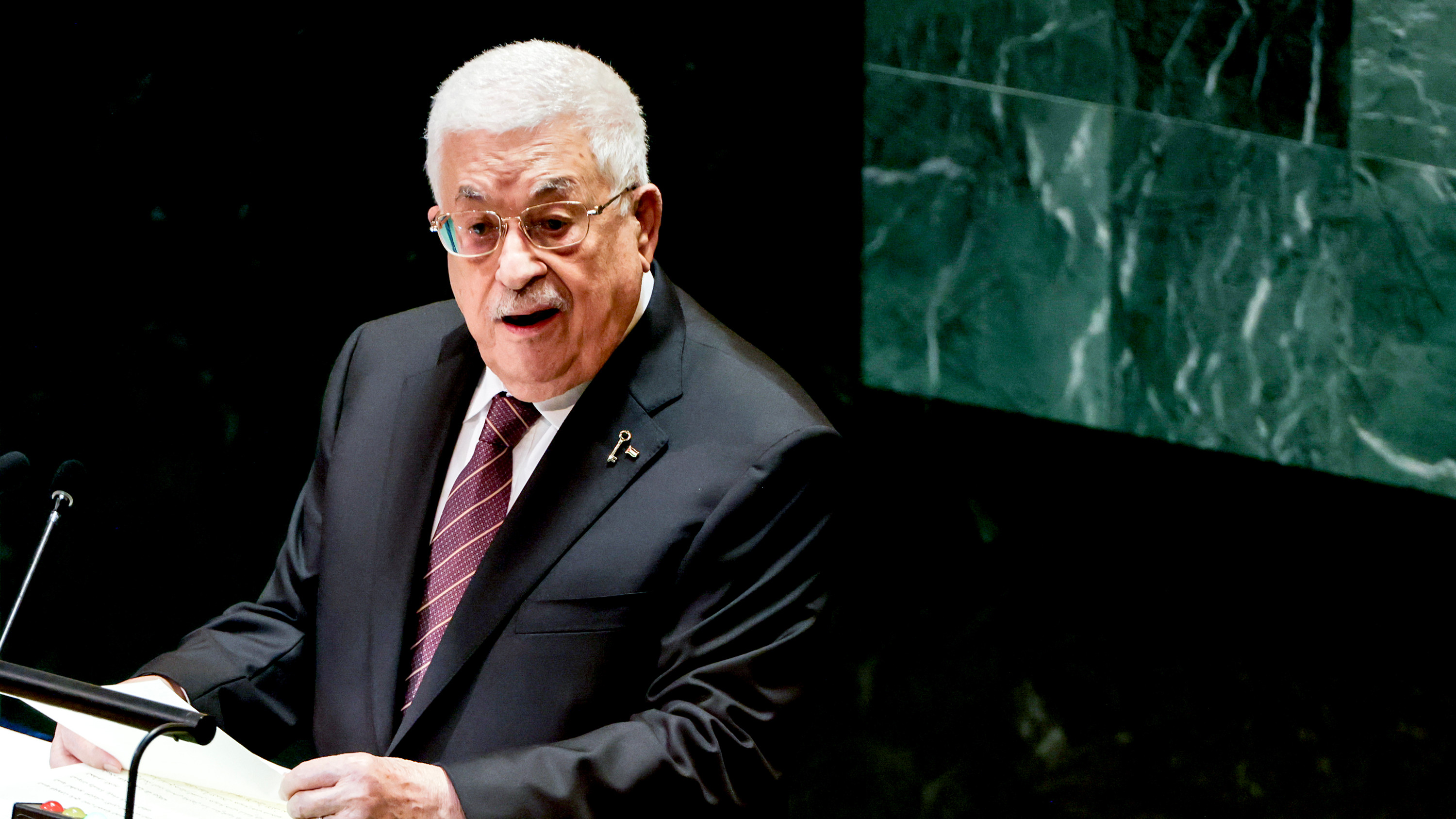 Махмуд Абас, президент на Палестинската автономна власт, говори по време на Общото събрание на ООН в Ню Йорк през 2024 г. Снимка: Джина Мун/Bloomberg