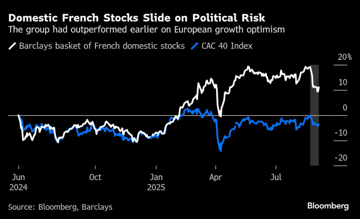 Строителни и инфраструктурни компании като Vinci SA и Eiffage SA, предприемачът на жилищни недвижими имоти Nexity и операторите на старчески домове Emeis SA и Clariane SE паднаха с 10% или повече оттогава. Банковите акции също пострадаха, предвид експозицията им към държавни облигации, като Credit Agricole SA и BNP Paribas SA паднаха с около 8%.
