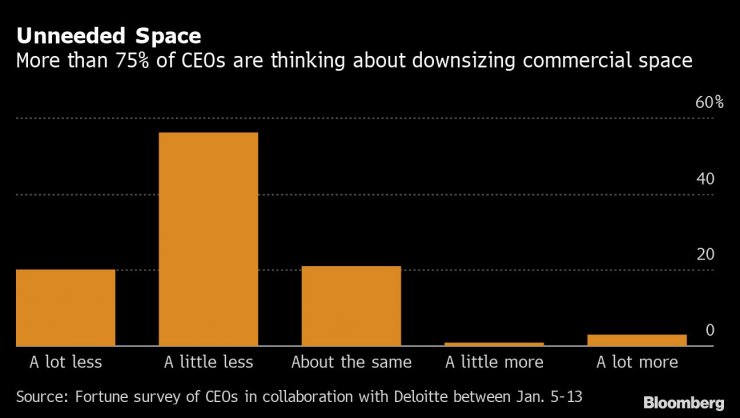 Повече от 75% от изпълнителните директори мислят за намаляване на офис пространството. Графика: Bloomberg